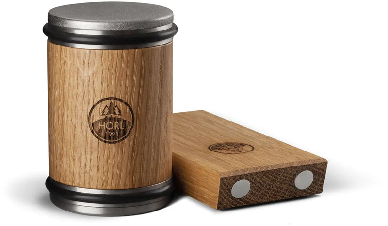 The preset 15° sharpening angle of the magnetic sharpening guide is the perfect combination of stability and sharpness. Once the 15° angle is established, you can sharpen your knife with just a few strokes. Your knife is always automatically held at the exact 15° sharpening angle. This means less material removal and faster results. The HORL magnetic sharpening guide has two sides for all knife sizes, from small paring knives to large chef's knives.