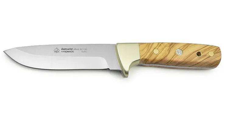 The PUMA IP hunting and outdoor knife in fallow deer olive is classic yet visually stunning. Beautiful nickel silver bolsters create a seamless transition from the blade to the handle. The handle scales are made of finely grained olive wood from southern Europe.