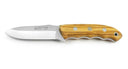 A characteristic feature of the IP knife ebro is the finger grooves in the lower handle area, which provide a secure grip. The blade length is a compact 9.5 cm with a thickness of 3.5 cm. The bolsters and handle rivets are made of stainless steel.