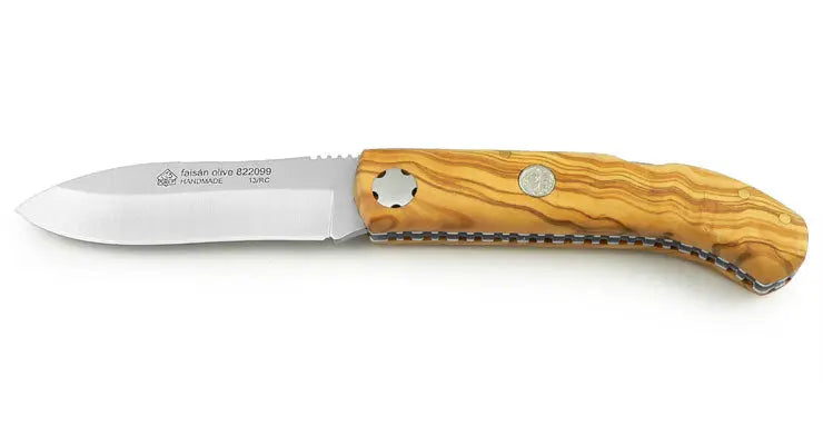 Our FAISN OLIVE pocket knife is the perfect everyday companion. The blade, made of 1.4116 stainless steel, is securely locked in place with a back lock mechanism. The olive wood handle scales, designed without any noticeable sharp edges, fit comfortably and securely in the hand. Lovingly crafted liners and a decorative blade screw complete the elegant design of this model.