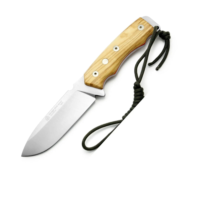 The PUMA IP savage olive knife consists of a single piece of steel and two screwed-on handle scales. It is robust and can withstand even the toughest conditions, as the blade, just under 12 cm long and made of German 1.4116 knife steel, is a full 5 mm thick. An elaborately crafted saddle leather sheath completes this exceptional outdoor knife.