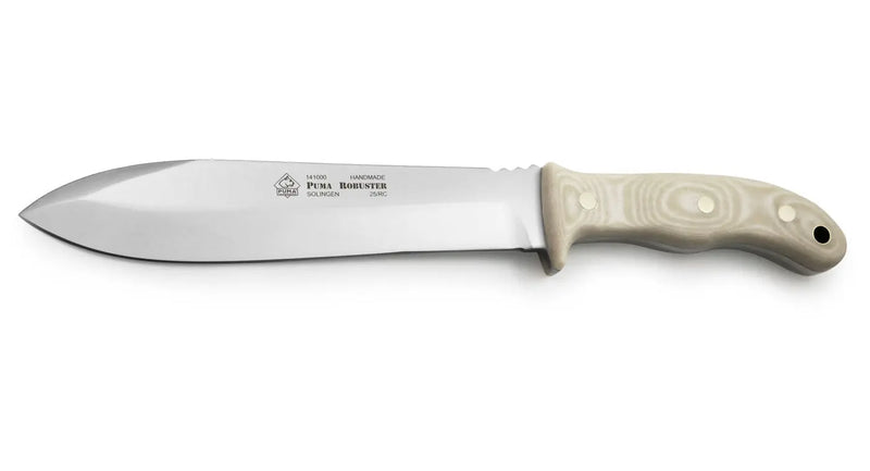 Whether for survival training, bushcraft adventures, or life in camp : The PUMA Robuster was developed for people who need to rely on their equipment. This high-quality outdoor knife combines striking design, maximum ergonomics, and field-tested functionality – handcrafted in Solingen .