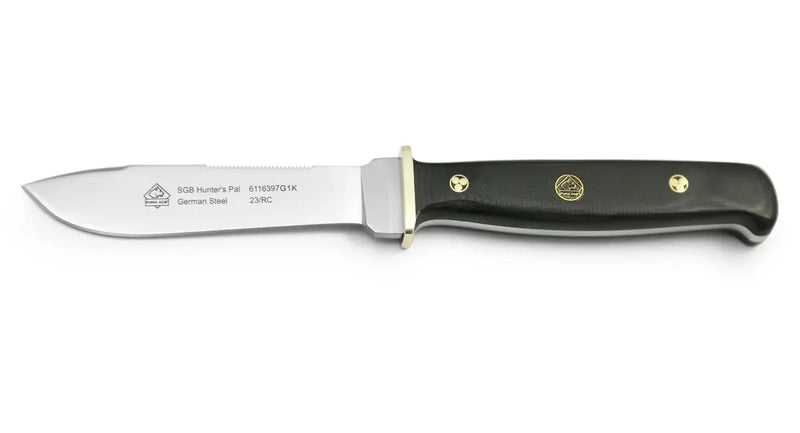 New to our American SGB line: The "hunter's pal" model with handle scales made of robust, black G10! Every hunter appreciates a good companion to stand by during their walks in the field. The "hunter's pal" is the perfect companion for the various tasks involved in processing game. Thanks to its compact and sturdy design with a full tang, this hunting knife is also suitable for outdoor use and as a practical lunch knife.