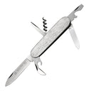 The new PUMA TEC pocket-tool is a multifunctional pocket knife featuring the following practical tools made of 420 stainless steel: a large blade, saw, Phillips screwdriver, corkscrew, awl, and a flathead screwdriver with an integrated bottle opener. At the end of the green G10 handle is a separate eyelet for attaching a lanyard or knife chain. This pocket-tool is a great all-rounder for everyday use.