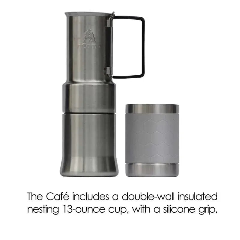 Egal, ob Sie campen, im örtlichen Park sind oder bei Ihrem Lieblingsspiel mitfiebern, die nCamp Kaffeemaschine wurde entwickelt, um überall Kaffee nach Espresso-Art zuzubereiten. Sie basiert auf der klassischen italienischen Moka-Kanne, die reichhaltigen und geschmackvollen Kaffee zubereitet, ist aber kompakt und langlebig. Die Kaffeemaschine ist etwa so groß wie eine Wasserflasche und fasst ca. 12 Unzen Kaffee (das entspricht 4-Demitassen oder 1 großen Tasse). Sie hat klappbare Griffe und einen ineinandersteckbaren Becher, so dass sie leicht zu verstauen ist. Der Becher hat eine Silikonhülle, die für Grip und Isolierung sorgt. Die Kaffeemaschine ist aus rostfreiem Stahl gefertigt und wurde so konzipiert, dass sie nahtlos mit dem nCamp Stove zusammenarbeitet. Sie kann aber auch mit vielen anderen Campingkochern verwendet werden. Entwickelt in den USA.