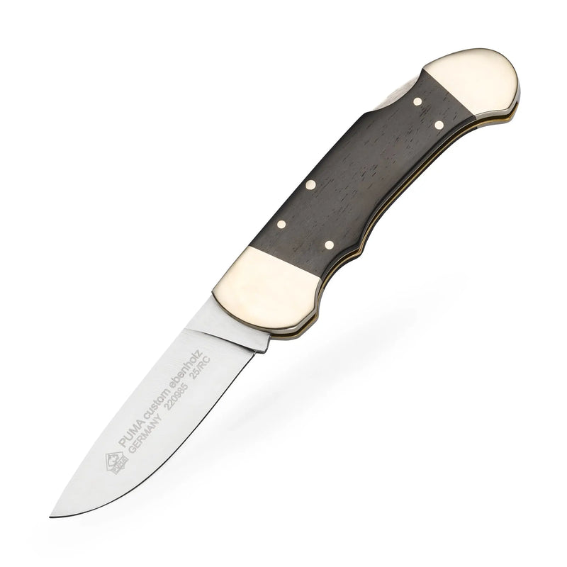 Das Design bestimmt nicht nur die Gestalt eines Messers sondern auch dessen besondere Anmutung und nicht zuletzt den Gebrauchswert. Unser formschönes Erfolgsmodell „custom“ ist nach einem Entwurf des bekannten deutschen Messermachers Richard Hehn entstanden und bereits seit mehreren Jahrzehnten im PUMA-Programm. Das kompakte und solide konstruierte Taschenmesser besitzt eine rostfreie Flachschliffklinge, Neusilberbacken und Griffschalen aus Ebenholz. Für die sichere Handhabung sorgt eine zuverlässige Rückenfederverriegelung.