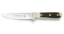 Die 250 Jahre lange Geschichte unserer Solinger Messermanufaktur spiegelt sich in dem Modell „historie“wider. Das robuste Allround-Jagdmesser ist als moderne Version mit fluoreszierenden Acryl-Griffschalen, die im Dunklen „leuchten“, ausgestattet. Ausserdem besitzt es eine voll durch den Griff gehende Klinge, gefertigt aus der Stahlsorte Sandvik 14C28N mit einer Härte von 60-62 HRC. Der Griffbereich ist für eine universelle Handhabung gerade geformt und trägt Backen aus Neusilber, die nicht nur formschön sondern auch funktional als Handschutz ausgestaltet sind. Dieses praktische Jagdmesser trägt nicht nur ein Stück Geschichte in sich, sondern ist auch ein zuverlässiger Allrounder auf allen Wegen in der Natur.