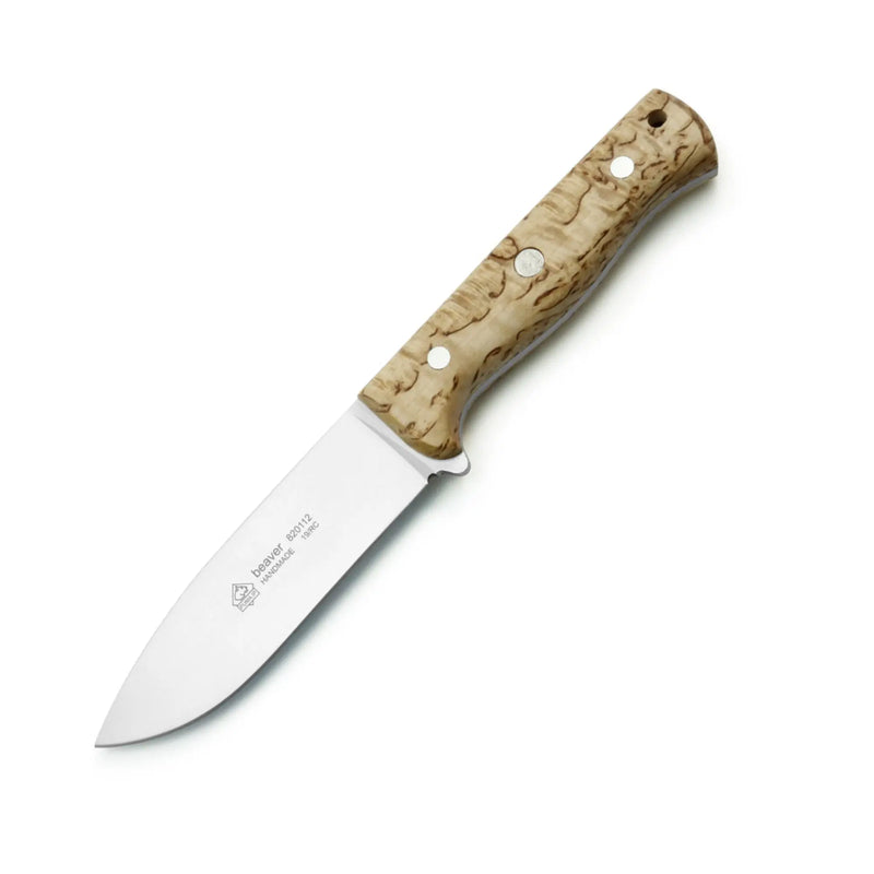 Das PUMA IP beaver macht nicht nur als praktisches Jagdmesser sondern auch bei allen Outdooraktivitäten eine gute Figur. Die11,2 cm lange und 4 mm starke Klinge aus deutschem, rostfreien 1.4116 Stahl besitzt einen Flachschliff und der durchgehende Flacherl ist mit Birkenholz beschalt. Mit paßgenauer Scheide aus Sattelleder.