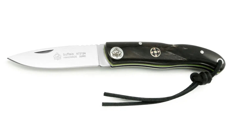 Unser neues PUMA IP buffalo ist ein klassisches Alltagstaschenmesser. Klein und leicht passt es in jede Hosentasche. Die Griffschalen sind aus Büffelhorn gefertigt und glänzen durch ein poliertes Finish. Ausgewählte Details wie die Zierniete im Griff runden den eleganten Look ab. Ein echter Hingucker sind zudem die grünen Bakelyt-Einlagen die das Eindringen von Feuchtigkeit verhindern.