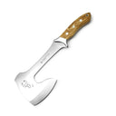 Alle Messermodelle der Markenlinie PUMA IP (Internationale Produktion) sind hochwertige Erzeugnisse, die in Zusammenarbeit von PUMA Solingen mit Partnermanufakturen in Spanien entstehen. Die dort für uns in Handarbeit gefertigten Schneidwerkzeuge werden meistens mit Griffschalen aus Naturprodukten, wie Hirschhorn und mediterranen Hölzern (z.B. Olive), manchmal auch aus unempfindlichen Kunststoffen, versehen. Die Stahlsorten werden dem Verwendungszweck des jeweiligen Messers entsprechend ausgewählt. Das Modell PUMA IP el hacha stag ist eine sehr führige Axt, gefertigt aus einem Stück zähem, rostfreien 420 Stahl mit Edelstahlbacken und Hirschhorn-Griffschalen. Das Klingenblatt ist mit einem gelaserten Pumakopf versehen. Der dazugehörige Klingenschutz aus Leder kann praktischerweise am Gürtel befestigt werden, wodurch dieses formschöne Werkzeug im Outdoorbereich komfortabel mitgeführt werden kann.