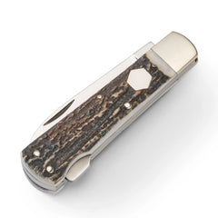 Jeder Jäger sollte zumindest ein Jagdtaschenmesser besitzen. Es dient nicht nur zum Versorgen des erlegten Wildes, sondern ist auch ein notwendiges Schneidwerkzeug für andere Verrichtungen im Revier. Das PUMA „jagdtaschenmesser I“ ist ein handgefertigtes Modell aus Solinger Produktion mit per Rückenfederverriegelung feststellbarer Klinge aus deutschem Qualitätsstahl nach DIN 1.4110. Der Griffkörper trägt Backen aus Neusilber und Hirschhornschalen mit eingelassener Gravurplatte. Dieses klassische Jagdtaschenmesser ist rostfrei und sorgfältigst montiert. Wer sich einmal für ein handgefertigtes Jagdtaschenmesser von PUMA entschieden hat, kann ein Leben lang Freude daran haben.