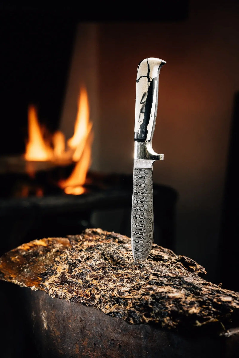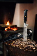 Hierzu gehört neben der Saufeder, dem Waidbesteck und dem Universal- Jagdtaschenmesser auch der „große Jagdnicker“. Dieses gelungene Modell ist seit vielen Jahrzehnten ein fester Bestandteil der Jagdausrüstung und hat bis heute nichts an Aktualität bezüglich Design und Funktionalität verloren. Als traditionelles Unternehmen fühlen wir uns auch heute noch verpflichtet, neben den modern gestalteten Modellen, auch den klassischen und altbewährten Formen einen gebührenden Rahmen zu geben. Aus diesem Grund präsentieren wir nun diesen wunderschönen Jagdnicker in einer ganz besonders hochwertigen und auf 50 Stück limitierten Ausführung als Jahresmesser 2021. Zur Auswahl stehen jeweils 25 Modelle mit Beschalung aus Büffelhorn sowie aus Mammutelfenbein. Neben diesen beiden exklusiven Griffmaterialien haben wir unser Jahresmesser mit Backen aus Neusilber und einer Klinge aus rostfreiem DAMASTEEL® DS93X™ „Odins Eye“ ausgestattet. Jedes Exemplar ist mit einer individuellen Seriennummer versehen. Zum Lieferumfang gehört eine schwarze Gürtelscheide aus Sattelleder, sowie eine besonders aufwendig gefertigte Geschenkschatulle aus edlem Walnussholz zum Präsentieren und sicheren Verwahren des Jahresmessers.