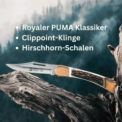 Die robusten, universell einsetzbaren und besonders hochwertigen Sportschließmesser mit den aristokratischen Bezeichnungen gehören seit den 1970'er Jahren zum PUMA-Sortiment. Die rostfreie, 95 mm lange Klinge des „prince“ besitzt eine praxistaugliche Clippoint-Form sowie einen feinen Hohlschliff und arretiert mittels zuverlassiger Rückenfederverriegelung. Für einen sicheren Zugriff sorgen rutschfeste Schalen aus echtem Hirschhorn, die paßgenau in dem stabilen Griffkörper aus Messing integriert sind. Dieses klassische PUMA-Messer ist der richtige Begleiter durch den Alltag, in der Freizeit, beim Wandern und allen anderen Beschäftigungen, wo ein gutes Taschenmesser gebraucht wird.