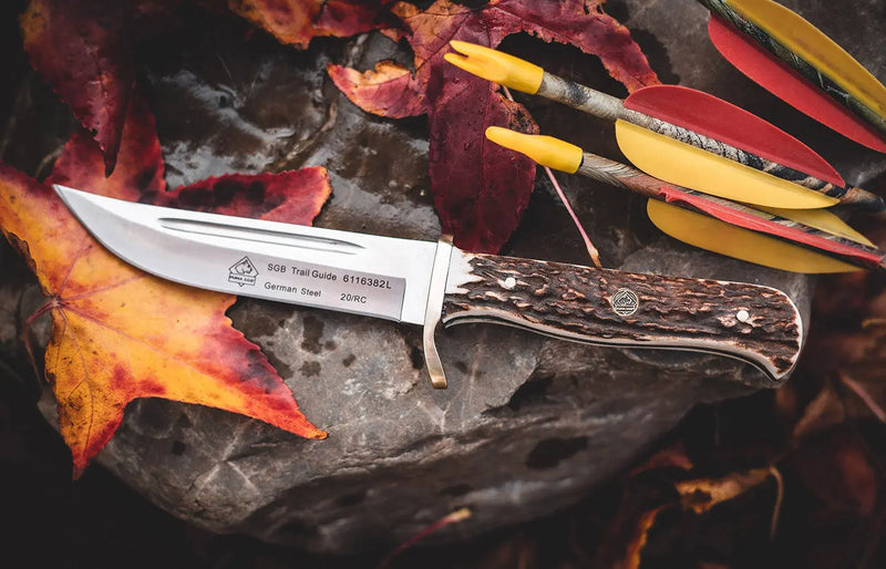 Das PUMA SGB Trail Guide ist ein tolles Jagdmesser, welches mit seiner spitz auslaufenden Klinge und seiner tiefen Blutrille optimal zu abnicken eingesetzt werden kann. Dem Namen nach ist es jedoch eigentlich als "Wanderführer" und Trackingmesser gedacht und macht auch dabei einen guten Job!
