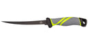 Mit diesem funktionstüchtigen Modell präsentiert PUMA TEC ein attraktives Filetiermesser. Die schwarz beschichtete Klinge aus rostfreiem AISI 420 Stahl sitzt durch eine Befestigung, ohne sichtbare Vernietung, fest im Heft. Zwischen Klinge und Griff liegt ein Handschutz aus schwarzem Kunststoff. Der rutschfeste Griff aus grau-grünem Soft-Kunststoff bietet auch bei feuchten oder kalten Händen einen sicheren Halt bei der Arbeit. Dem Petri-Jünger stehen drei Modelle mit den Klingenlängen 13, 15 und 18 cm zur Auswahl. Inkl. schwarzem Kunststoff-Klingenschutz mit beidseitigen Lüftungsschlitzen und Fangriemenöse am Griffende.